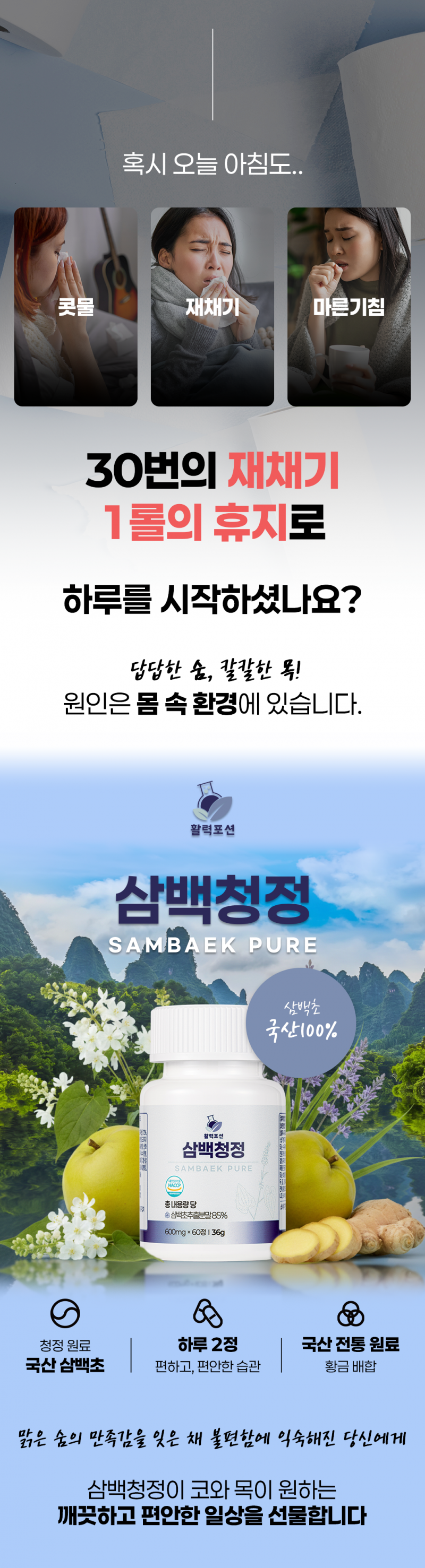 비염, 콧물, 코막힘 (신제품) 삼백청정 블로그 체험단 모집합니다