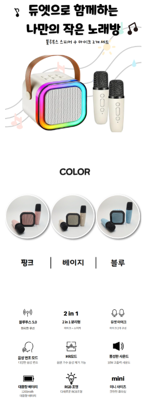 어린이 블루투스 스피커마이크 2in1 제품 배송체험단을 모집합니다