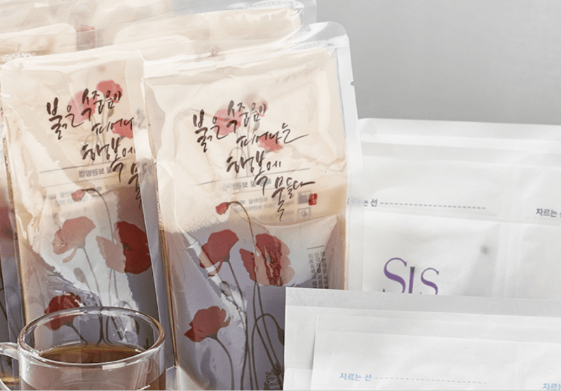 • 제품 사진: 해독 2일 프로그램 구성품, 한약 파우치 및 패키지 디자인
