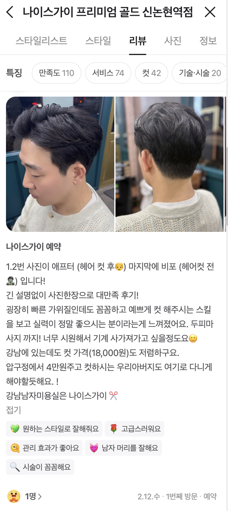 신논현역 도보 5분, 두피마사지 및 컷,펌 가능 20년 경력 원장님 프리미엄 남자미용실 체험단