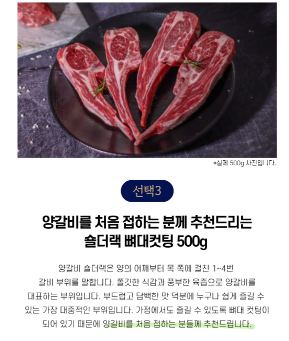 | 제공내역 | - 숄더랙 뼈대컷팅 500g + 쯔란소스 |