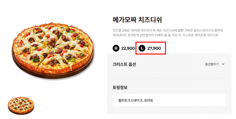 | 제공내역 | - 청년피자 신메뉴 '메가 모짜 치즈디쉬 L +코카콜라 1.25 |