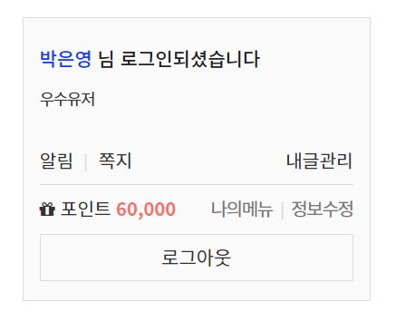6만 포인트 중 39840원은 구매평으로 받은 거라 로그인&댓글로 모은 건 20,160원
