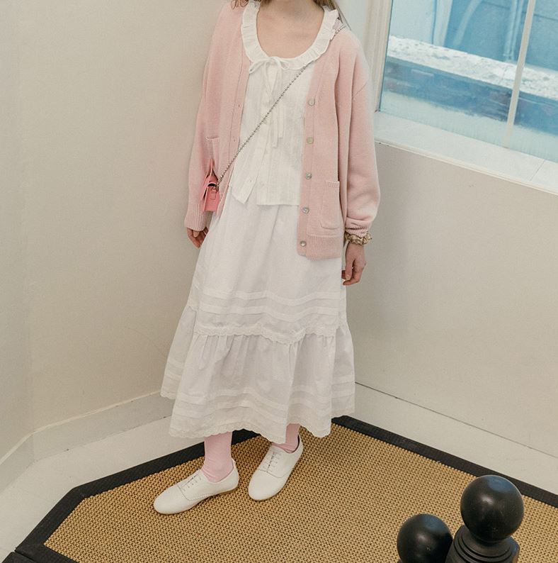 (W컨셉)(Only 화이트)달래 플라워 라이닝 레이스업 플랫 로퍼
