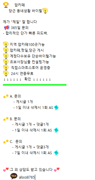 맘카페/당근/바이럴해드립니다 !