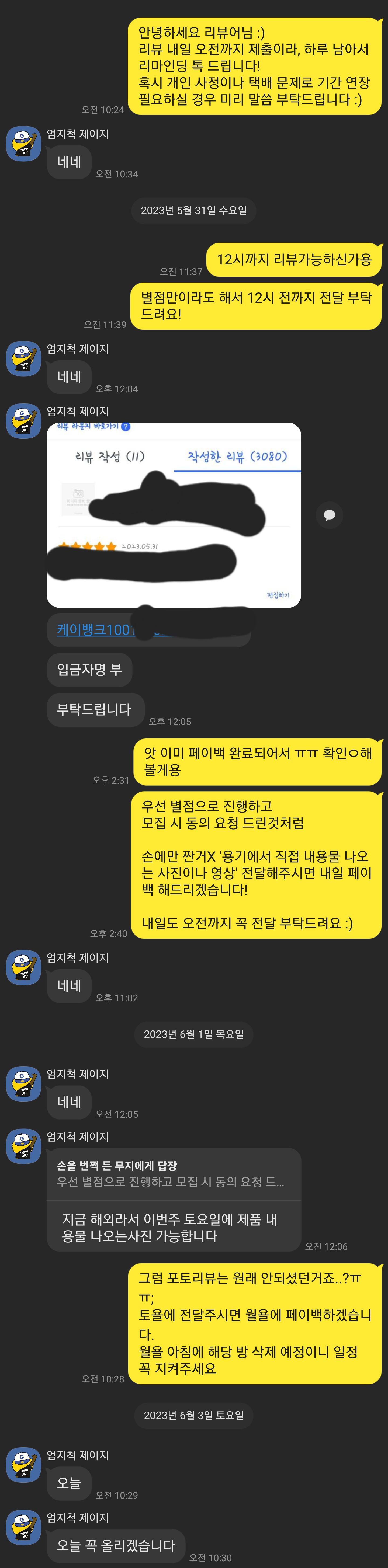 (리뷰 일자는 모집 시부터 안내했고, 일주일 이상 드렸어요)