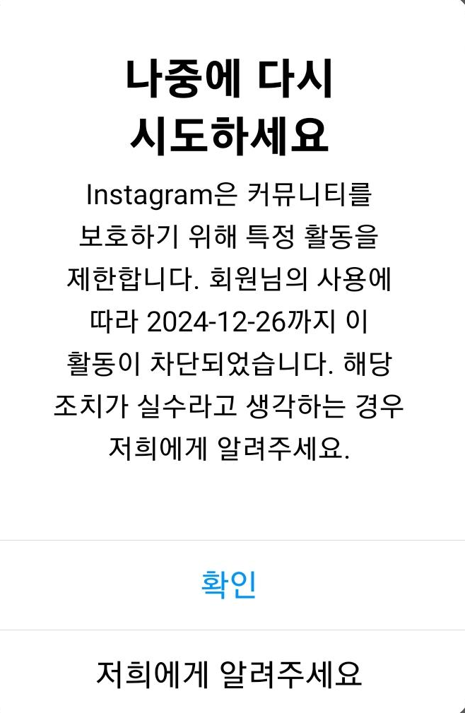 인스타그램 하시는 분들 오류로 댓글 정지된 적 없으세요?