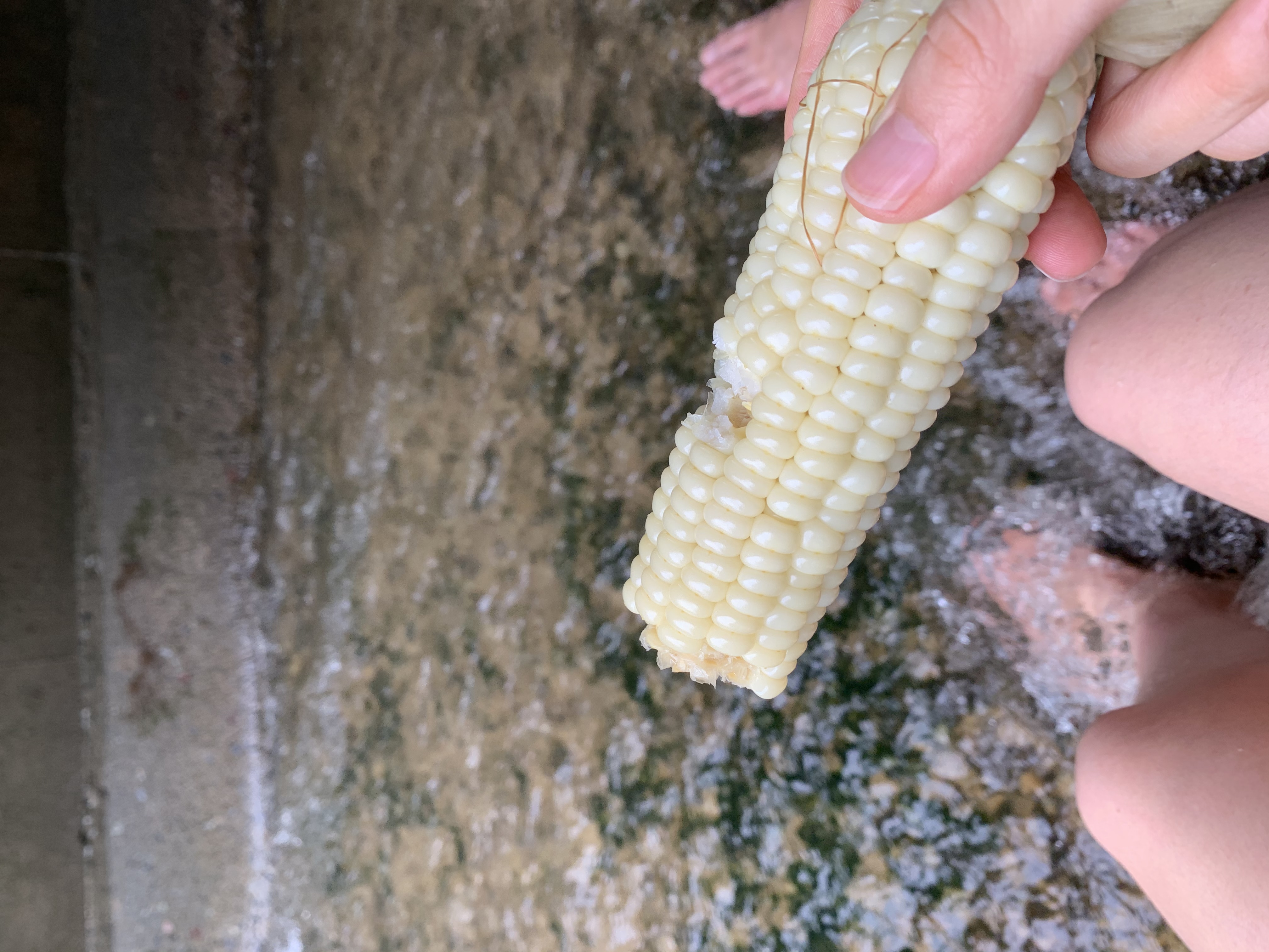 발 담그고 옥수수먹기
