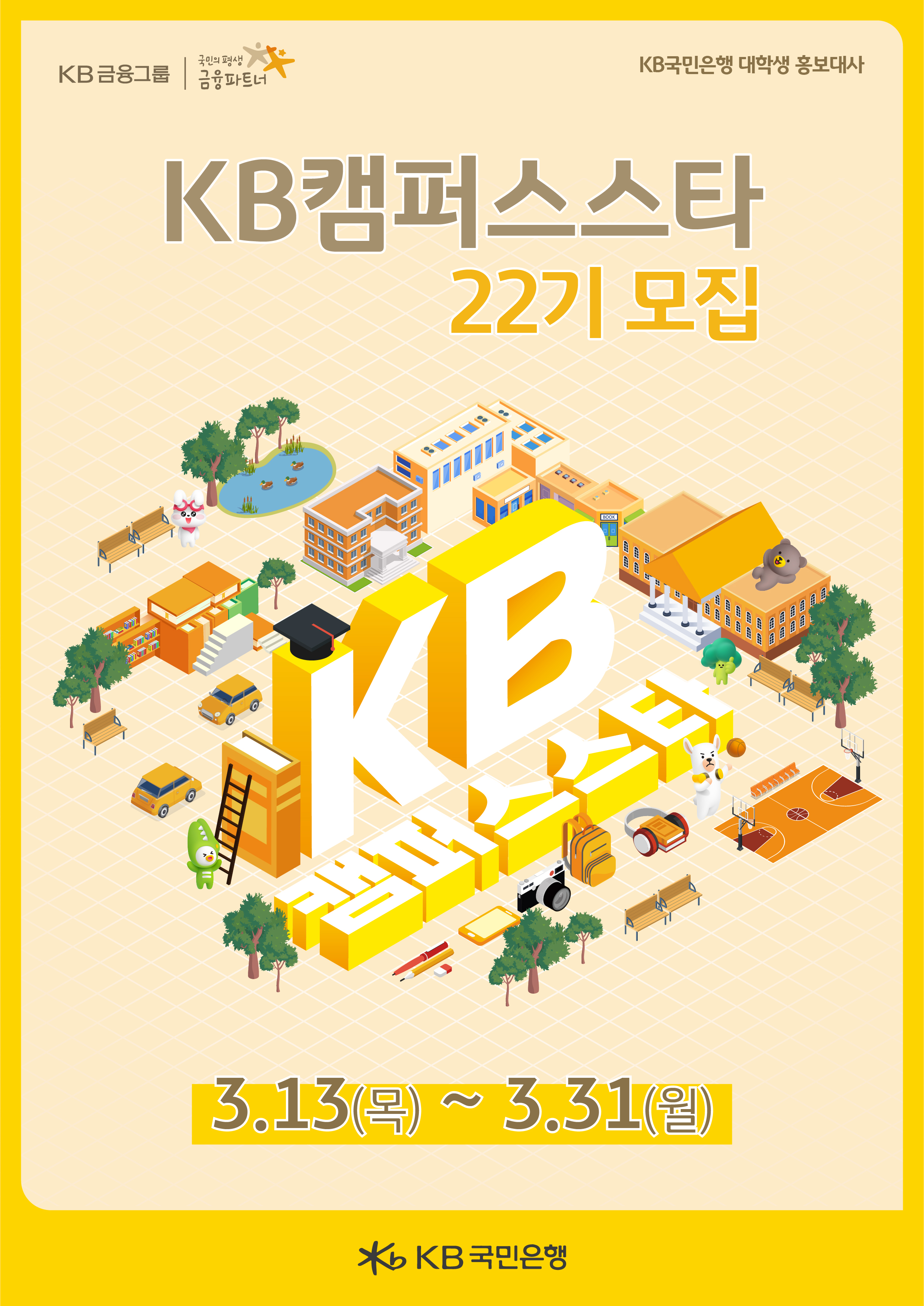 KB국민은행 22기 서포터즈 모집 20,000원 (20~32세)