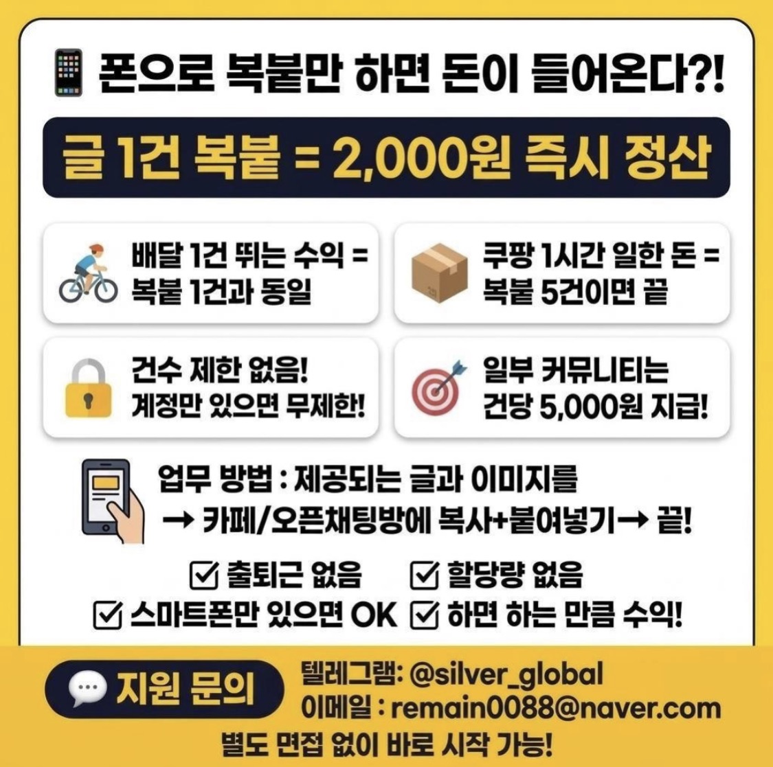 폰으로 복붙만 해도 건당 2000원~5000원 주는 알바 공유해요
