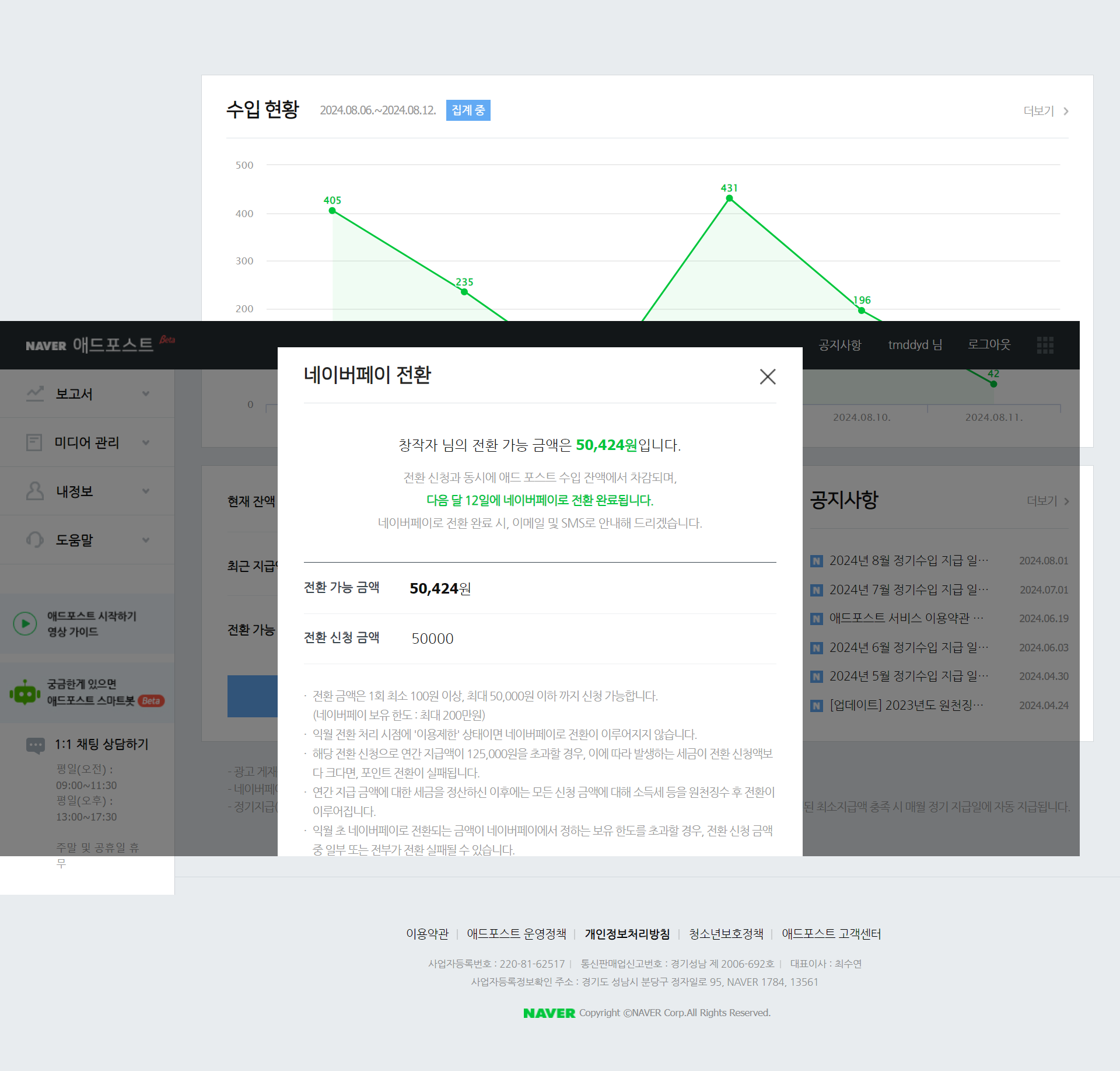 네이버 블로그 애드포스트 9월 12일 출금