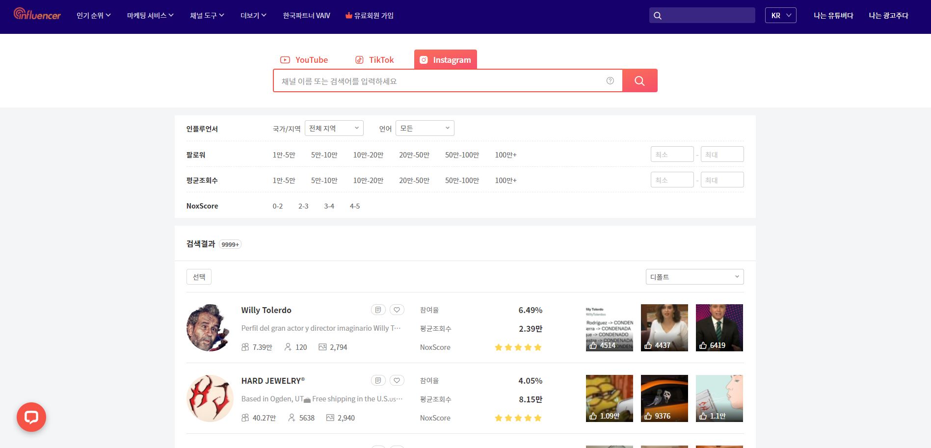 녹스인플루언서 사이트는 크게 두 가지 방법으로 인스타그램 인플루언서를 찾을 수 있는데