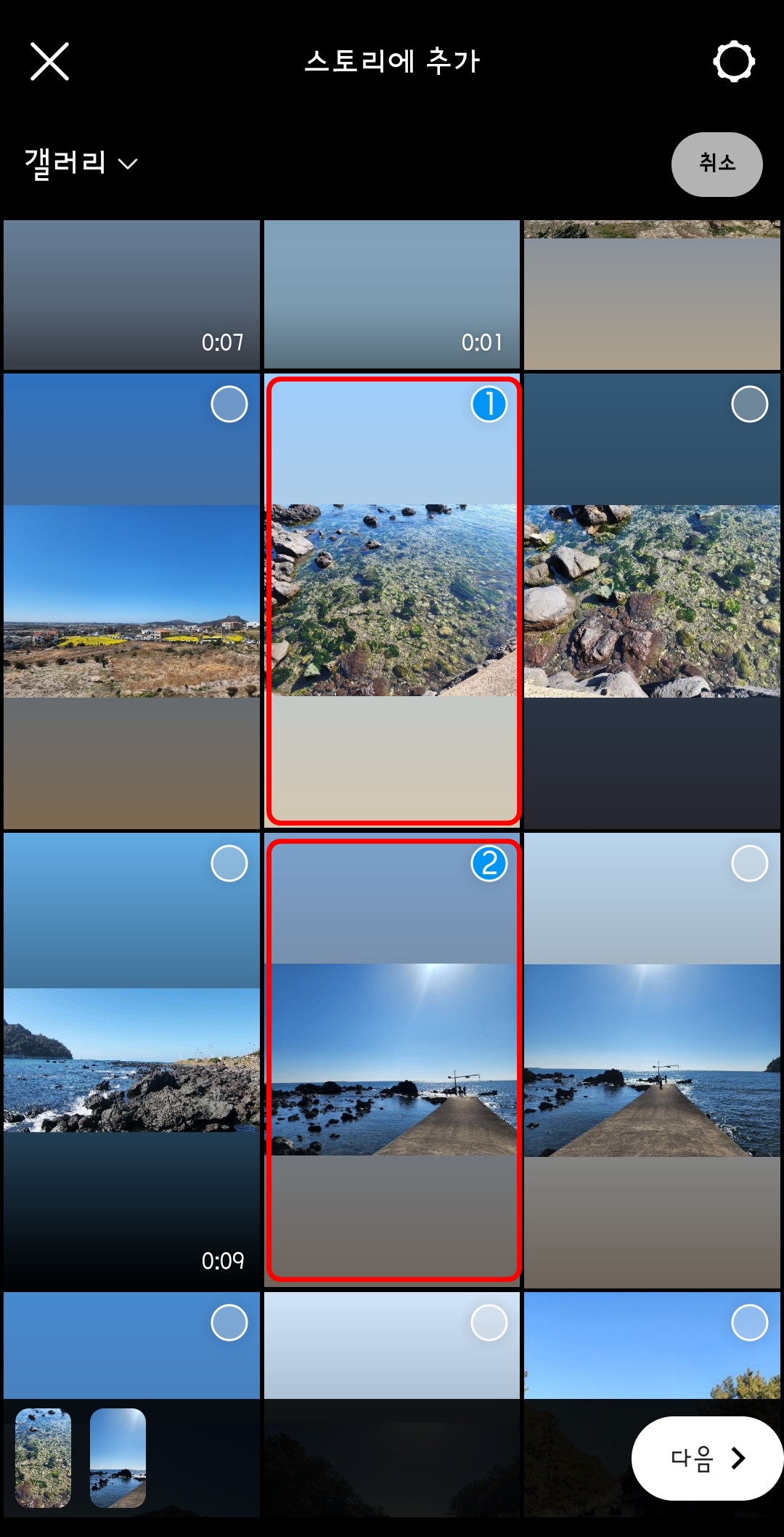 스토리에서 여러 이미지를 선택하면 되는가? 입니다.