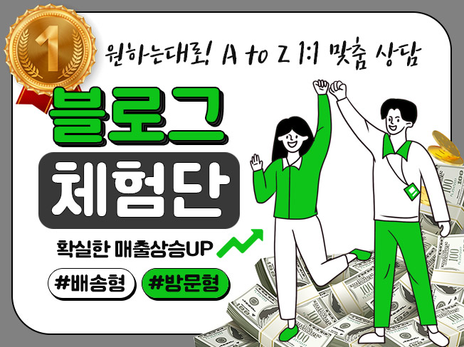 블로그체험단 배송형 · 방문형 높은 퀄리티로 효율있게 도와 드립니다.