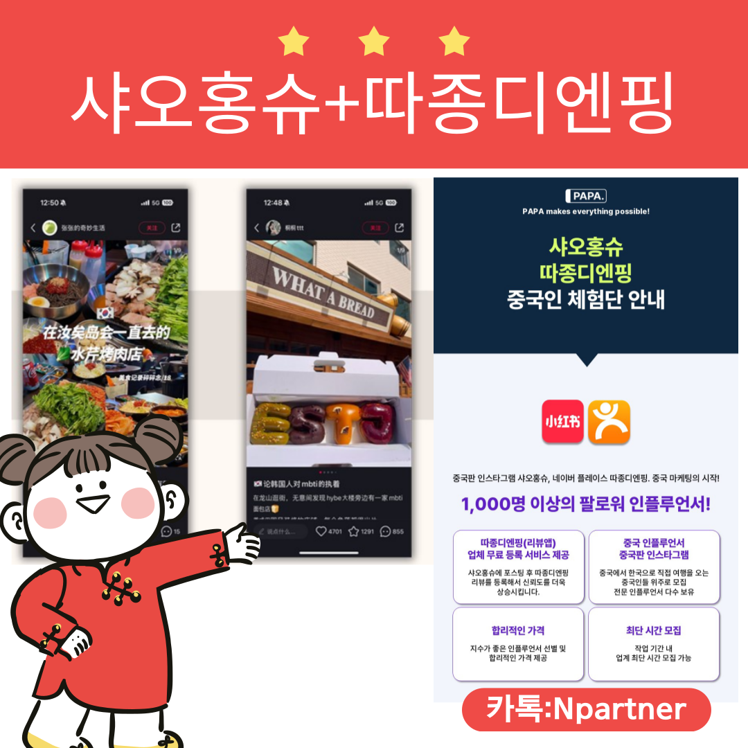 샤오홍슈+따종디엔핑 중국인 인플루언서 체험단