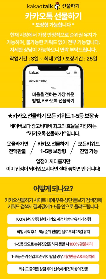 카카오톡 선물하기 상.위.노.출 실행사 안전하게 작업해드립니다 ~