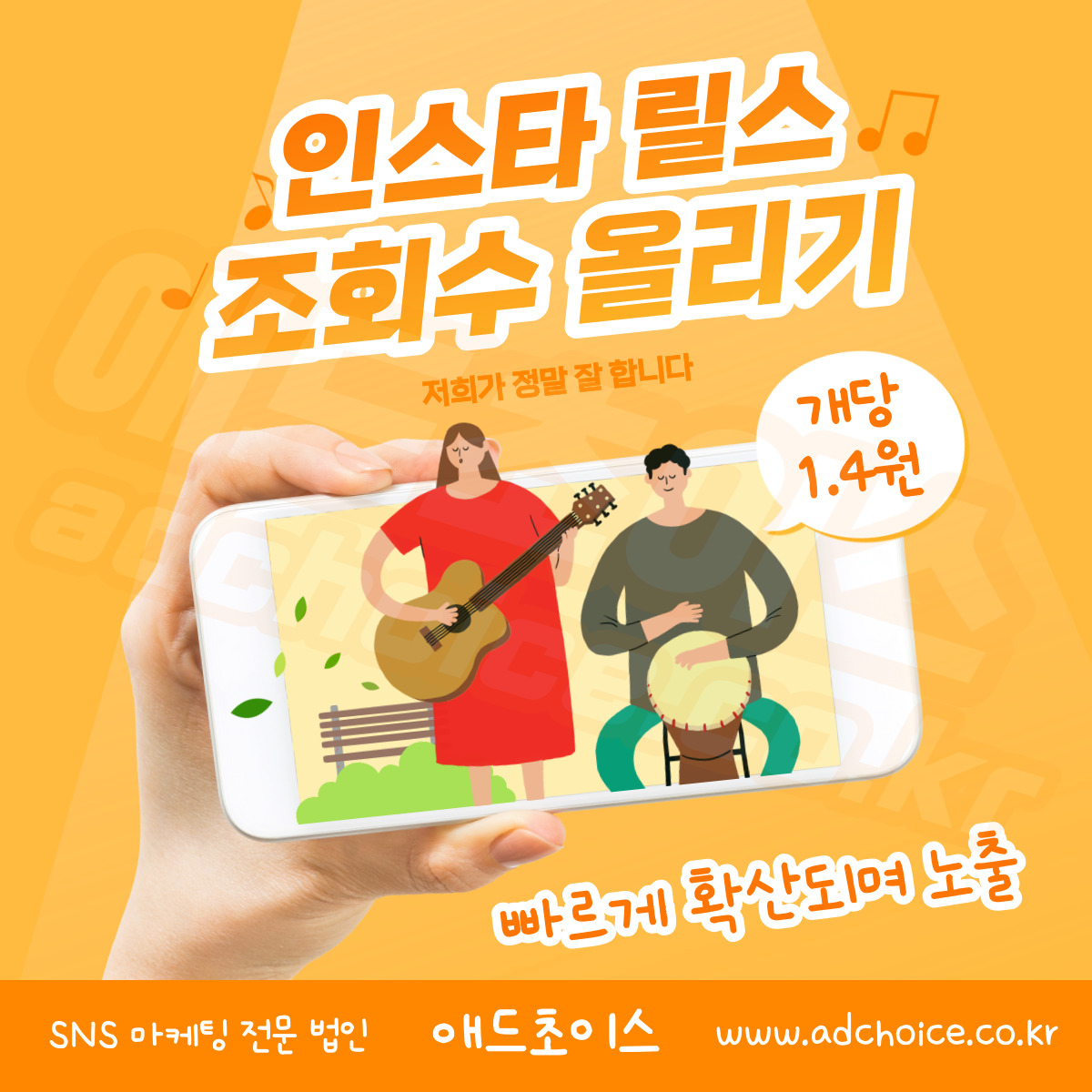 소중한 SNS 계정을 아무 업체에게나 맡기셨다가는 자칫 돈과 시간을 낭비하실 수도 있습니다. 그렇기에 이것저것 꼼꼼하게 비교분석해 보신 후 국내 최고의 마케터들이 연구해 만들어낸 최상의 마케팅 서비스 시스템으로 안전과 비밀을 보장 받으며 낮은 비용으로 높은 효율의 광고효과를 경험하실 수 있는 SNS 마케팅 전문 법인 애드초이스와 함께 해 보시길 바랍니다.