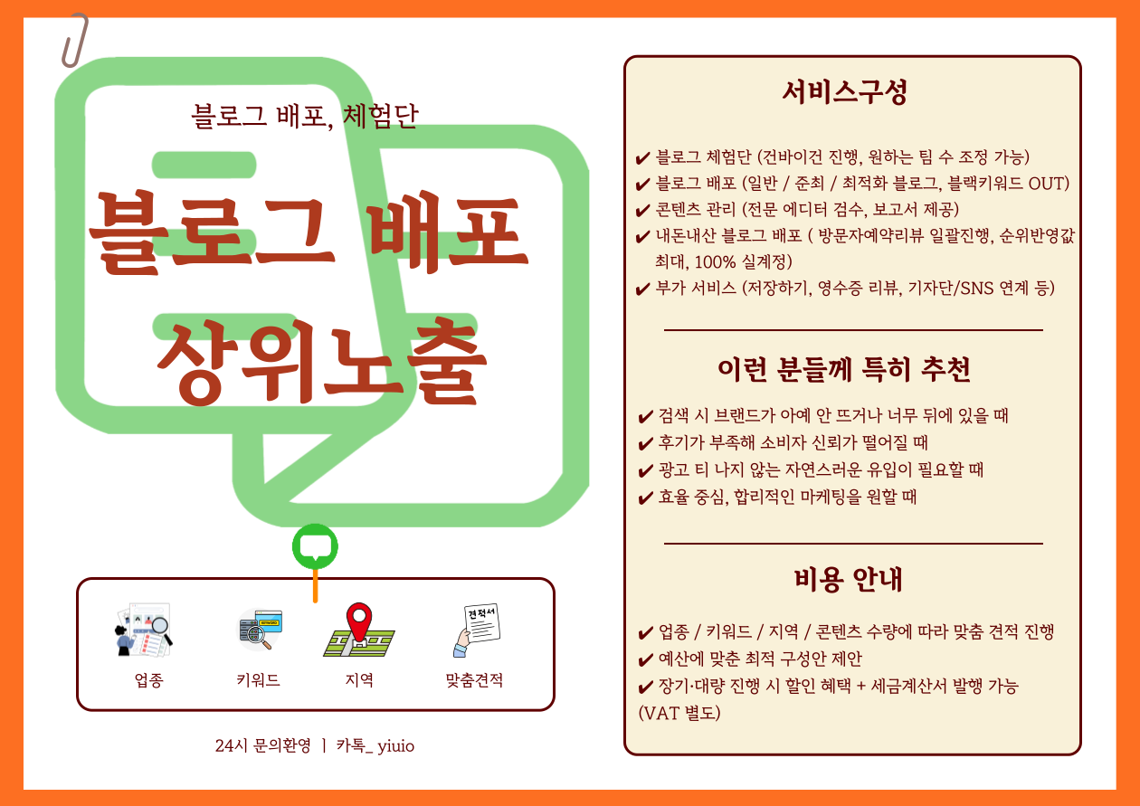 ✔ 내돈내산 블로그 배포 ( 방문자예약리뷰 일괄진행, 순위반영값 최대, 100% 실계정)