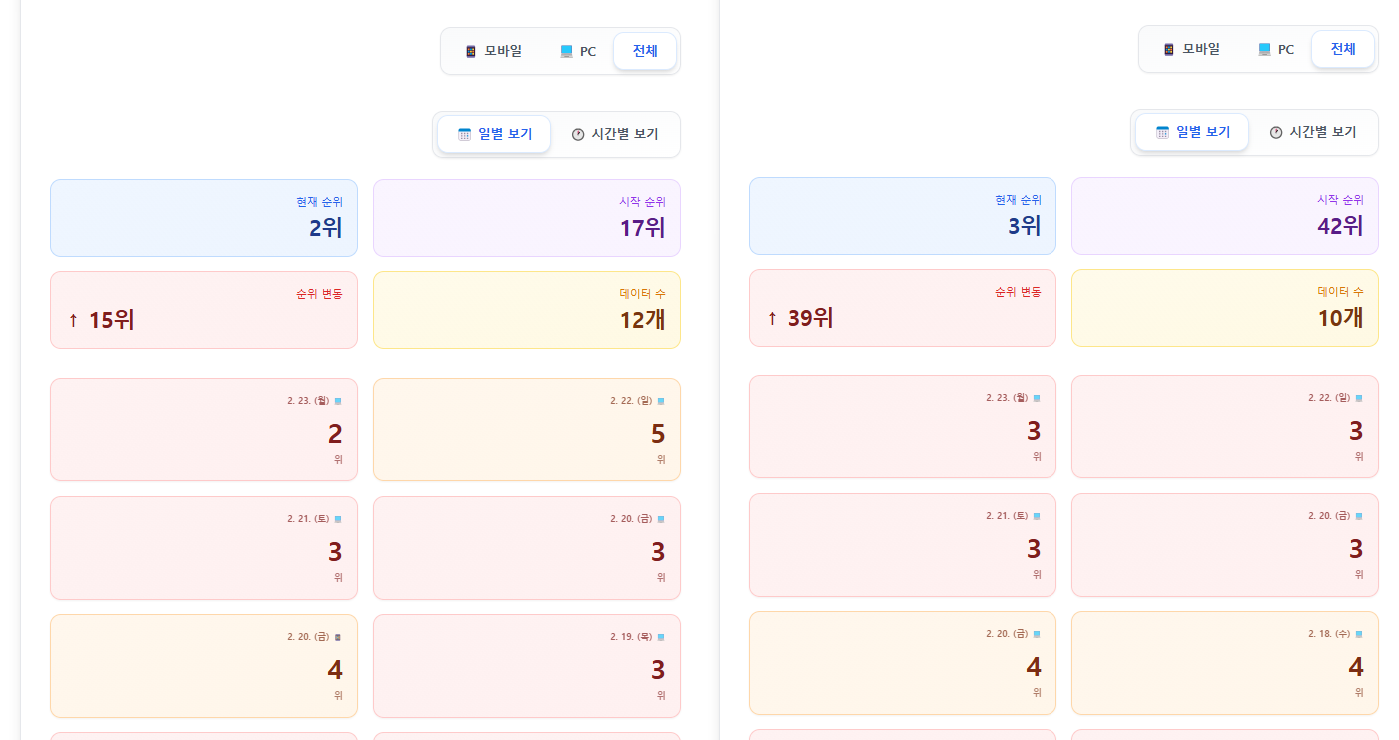 ✔ 실시간 순위 확인 가능한 관리 UI 제공
