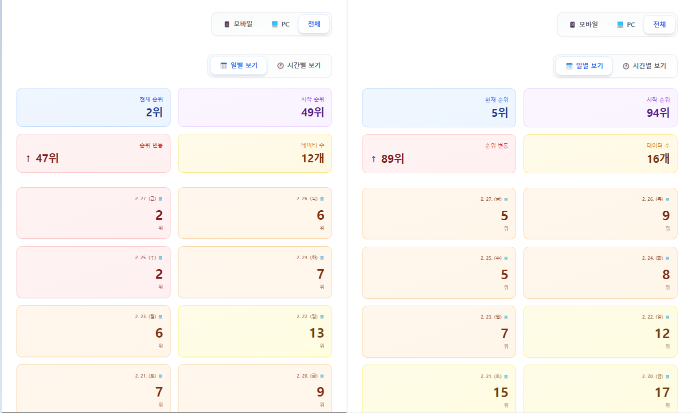 ✔ 실시간 순위 확인 가능한 관리 UI 제공