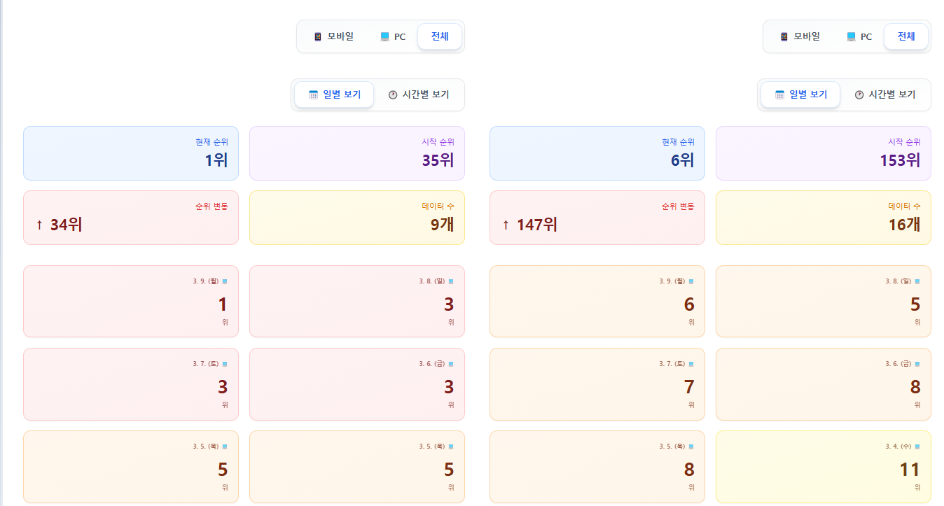 ✔ 실시간 순위 확인 가능한 관리 UI 제공