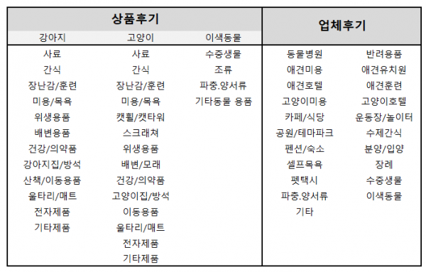 -. 반려용품에 대한 후기 - "상품후기" 게시판