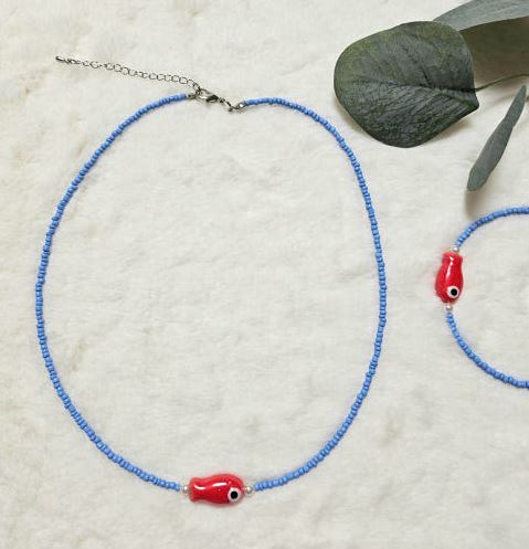 - 핸드메이드 물고기 비즈목걸이 포인트