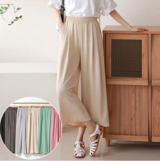 여성 린넨 밴딩 와이드 팬츠
