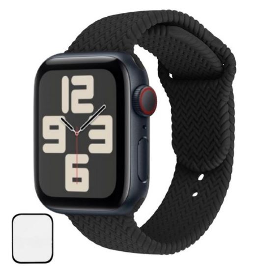 - 누베이스[쿠팡]애플워치 10 호환 스위프트 브레이드 솔로루프 실리콘 스트랩 + 보호필름 1P 세트