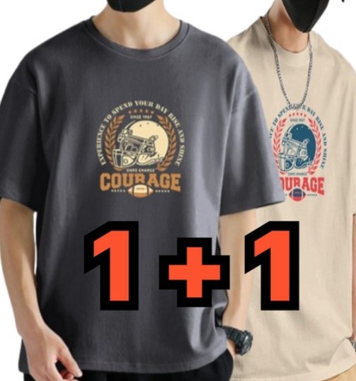 - 슈퍼샵[쿠팡]남자 여름 티셔츠 프린팅 레터링 라운드넥 반팔티 1+1 세트