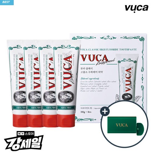 구취케어 고불소 치약 아쿠아민트 110g 4개입 입냄새 제거 + 뷰카 치약짜개 디스펜서 1개