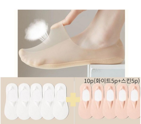 벗겨지지 않는 통기성 페이크삭스10켤레(화이트5P+스킨5P)