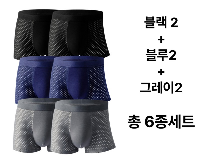 - 벨에라[쿠팡]남자 3D 입체 메쉬 모달 드로즈 사각 팬티 트렁크 6종세트