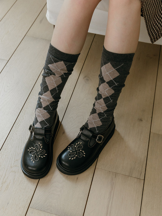 (W컨셉)빌리 T 스트랩 자수 로퍼_2color 3cm