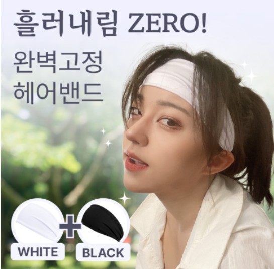 - 리소공방[쿠팡][화이트+블랙]런닝헤어밴드 땀흡수 논슬립 운동 세안용 머리띠