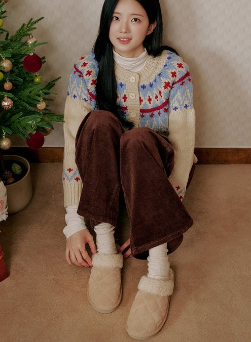 (W컨셉)쏠랑 소가죽 퀼팅 뽀글이털 방한 뮬_2color