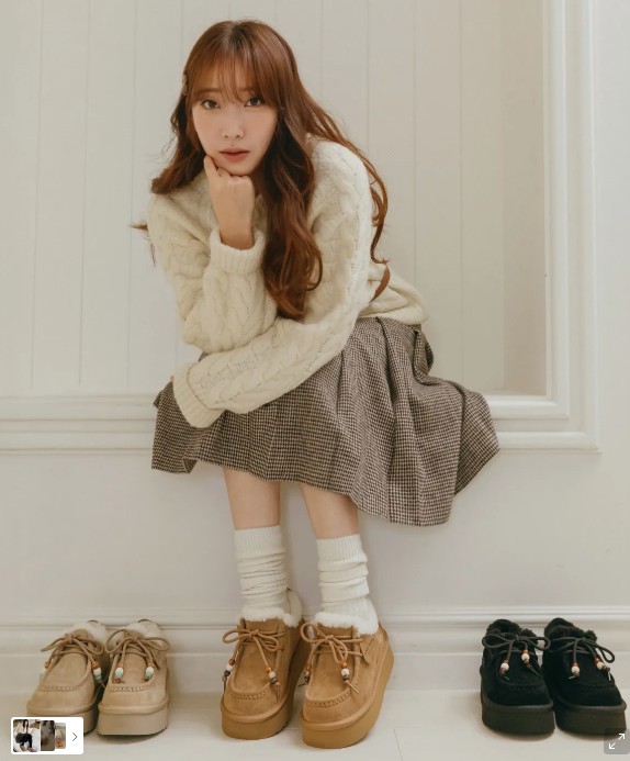 체험상품 - 마크모크[무신사]둥실 구슬 하트 참 방한 통굽 어그 로퍼_3color