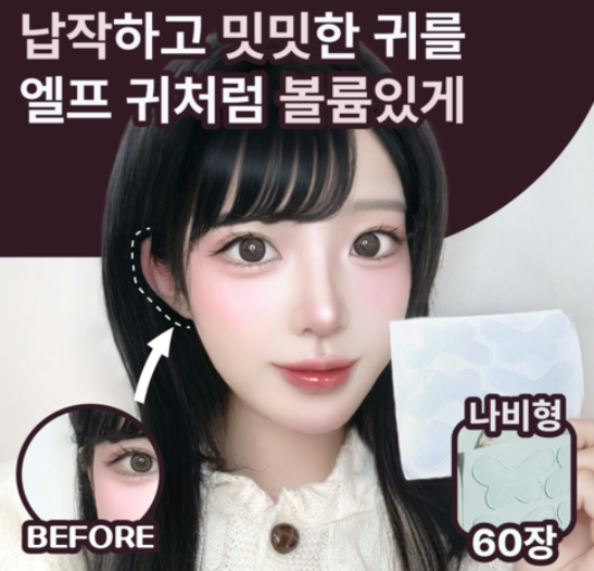 체험상품 - 리소공방[쿠팡]티안나는 누운귀 교정 테이프 엘프귀 스티커, 60개, 나비형