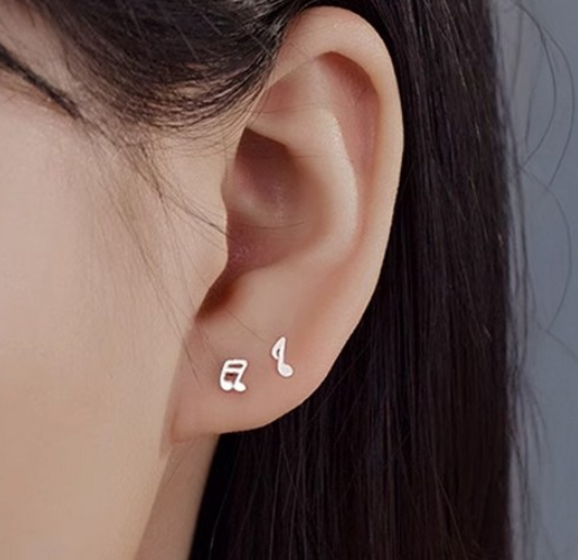 S999 순은 음표 미니 귀걸이 1+1 은침 데일리 심플 귀걸이