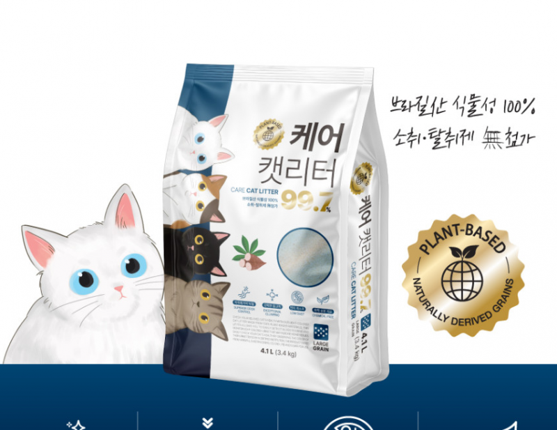 케어캣리터 99.7% 카사바 식물성 고양이모래 3.4kg 무향 (+주식캔 3캔 구성)