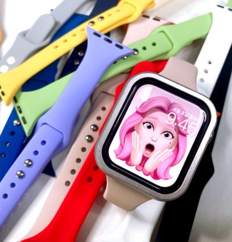 - 누베이스[네이버]애플워치 10 9 8 7 SE2 슬림 더블 단추 실리콘 스트랩 밴드 시계줄 줄질 + 필름 1P