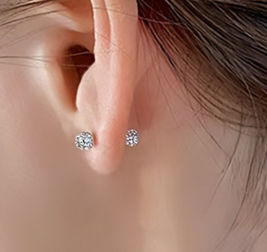 925 순은 도금 큐빅 바벨 피어싱 데일리 귀걸이 1+1