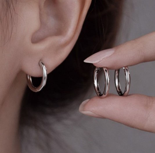 - 다전사[쿠팡]스테인리스 원터치 링 귀걸이 12mm 심플 미니 링귀걸이 데일리 귀걸이 1+1