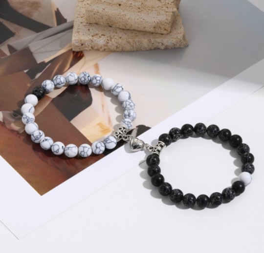 - 헬로미루[쿠팡]터키석 비즈 커플팔찌 세트 행운팔찌