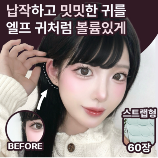 - 리소공방[쿠팡]티안나는 누운귀 교정 테이프 엘프귀 스티커, 60개, 스트랩형