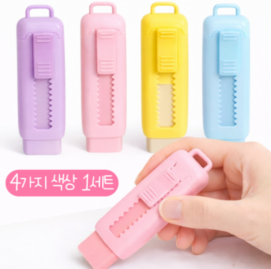 - 마루이엔씨[쿠팡]클린제이 잘 지워지는 파스텔 슬라이딩 샤프식 지우개, 4개, 핑크 블루 엘로우 바이올렛