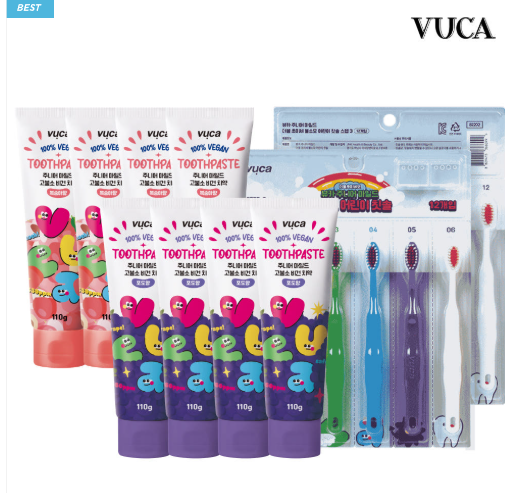 - 뷰카[N쇼핑]뷰카 주니어 어린이 고불소 비건치약 110g 4개+4개+주니어 칫솔 12개입