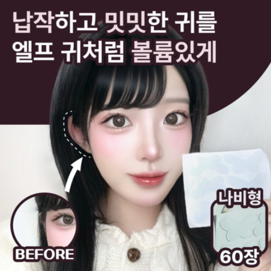 - 리소공방[쿠팡]무드업 티안나는 누운귀 교정 테이프 엘프귀 스티커, 60개, 나비형