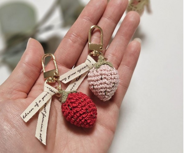 - (2colors)딸기 한알 뜨개 키링 핸드메이드 키홀더