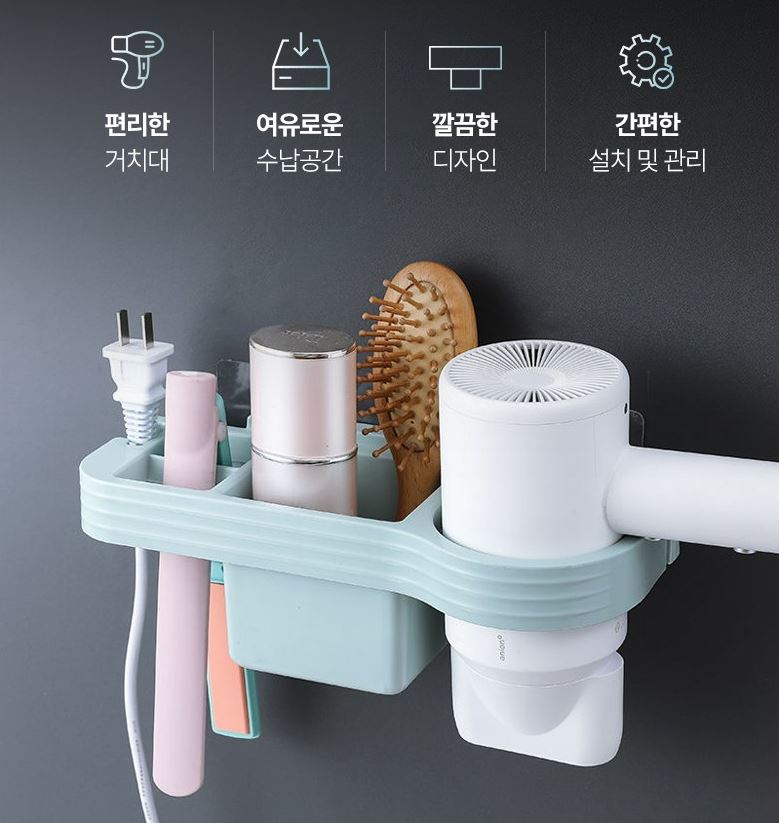 2in1 고데기 드라이기 걸이, 화이트, 1세트
